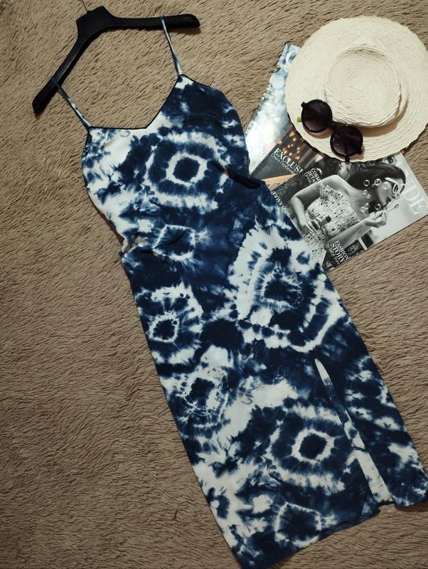 В идеальном состоянии. Красивое платье миди с разрезом. Тканина легка, не тягнеться. Размер 12/40/L, но маломерит в груди, смотрите по замерам Замеры (полуобхват): Груди 46 Талия 45 Стегна 55 Длина с шлейками 106
