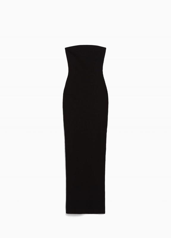 Довга сукня-бандо в рубчик. Вечірня чорна сукня, виготовлена з бавовни. Розріз ззаду. С-М
