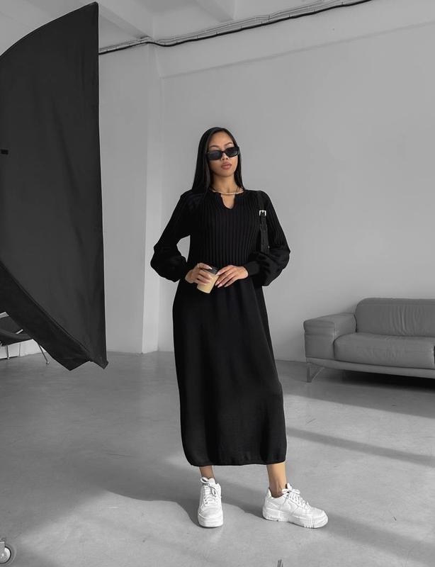 В’язана сукня міді 🤍 - Преміальна пряжа на основі бавовни та кашеміру - М’яка та приємна до тіла в’язка - Гарно тримає форму - Ідеальний крій та посадка - Вільний розслаблений фасон - Рукава на манжетах - V-образний виріз 50% бавовна, 30% кашемір, 20% вовна меріноса Розміри: XS/S, M/L, XL/XXL