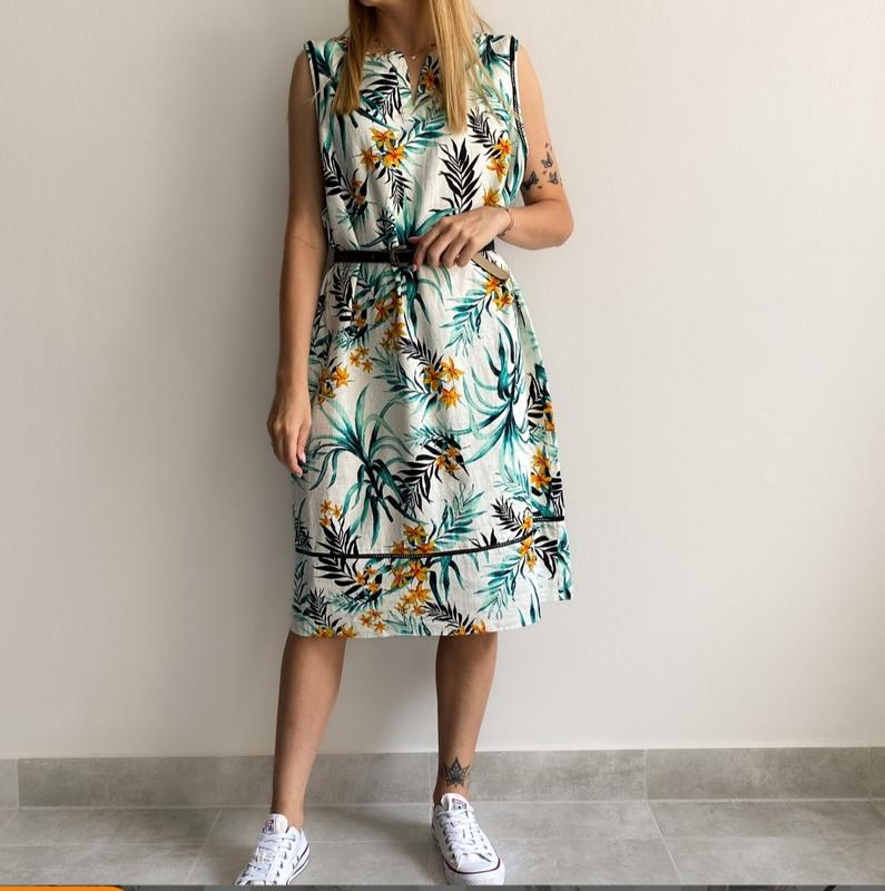 Платье лен вискоза льняное платье Сукня "Пальма"🌿 прямого кроя Бренд: George Состояние: новый Состав 52% лен,48%вискоза 🏷️Размер на наборе указан UK 14 (EUR 42) 📐 По грудей 55 см По талии 49 см По стегон 56 см Длина изделия 101 см ✨ Легкое, дышащее и невероятно комфортное льняное платье в цветочном принте 🌺 Свободный крой, яркий рисунок и натуральная ткань делают ее идеальным выбором для лета. Платье, в котором вы будете чувствовать себя женственным, свободным и уверенным каждый день! 💛🌿