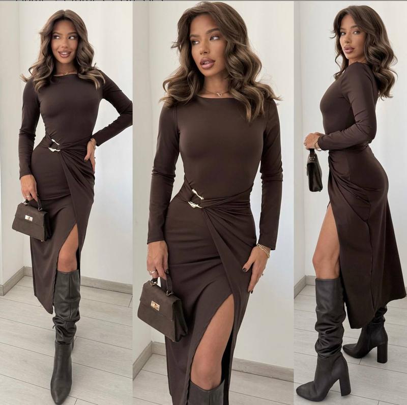 Модель 5675 к.ф Женское платье с бляшкой Цена 810 грн Ткань микро дайвинг высокого качества (приятна на ощупь и тянется) Размерный ряд S,M,L,XL Цвета черный, шоколад Декор как на фото, дорога золотая металлическая бляшка, очень красиво смотрится Стильная и очень красивая модель Супер качество