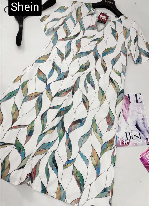 Платье женское миди в принт с короткими рукавами и карманами от бренда shein s