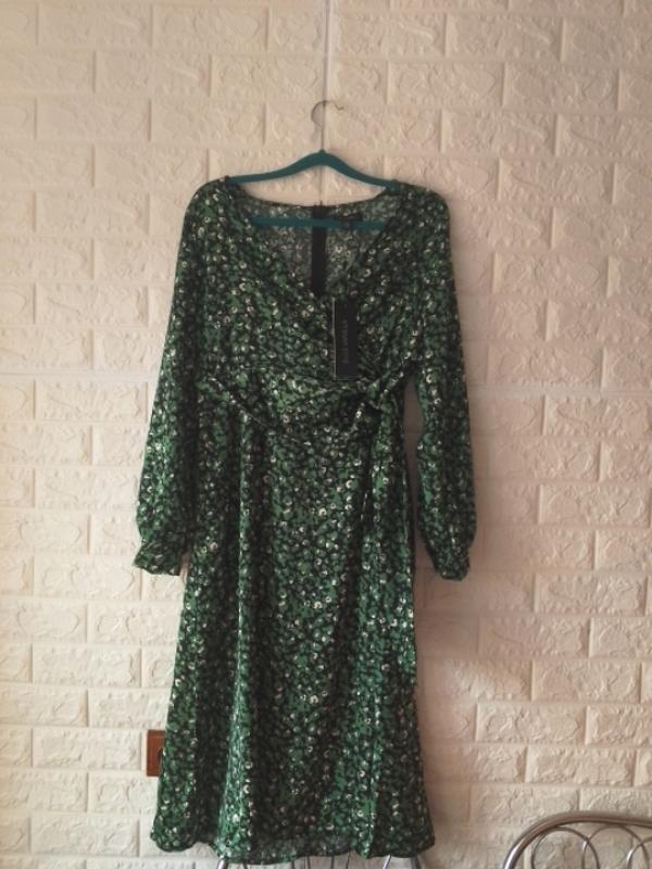 Стильное платье,с драпировкой, в виде широкого пояска, сзади, по спинке есть замочек, легкая и приятная к телу, трендового зеленого цвета,нова