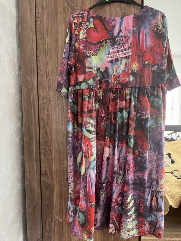 Плаття дуже красиве, ОГ 110-115, розмір по бірці Л. Тканина поліестер, довжина плаття 105, рукав від плеча 35.