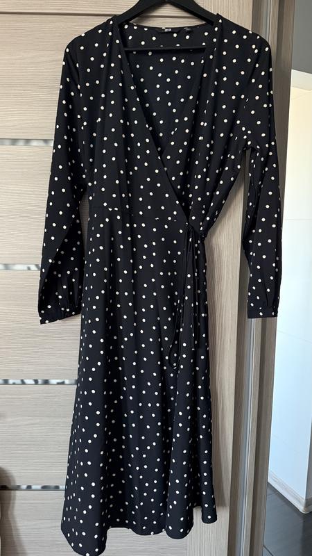 Жіноча сукня Uniqlo, розмір L Стильна й жіночна сукня-міді з V-подібним вирізом і принтом «горошок». ✔ Текстурована крепова тканина красиво драпірується ✔ Фасон на запах, куліска на талії для ідеальної посадки ✔ Глибокий V-виріз, складання на плечах ✔ Довгі рукави-ліхтарики з манжетами на ґудзиках ✔ Зручні бічні кишені ✔ 100 % поліестер, легка та повітряна Ідеальна як для повсякденних образів з черевиками та колготками, так і для більш урочистого стилю з підборами та аксесуарами. Стан виробу – дуже хороший. Країна виробник: Китай Країна реєстрації бренду: Японія