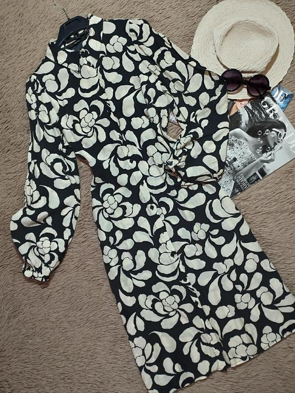 В идеальном состоянии.. Красивое цветочное платье-рубашка миди с объемными рукавами. Размг 10/5Идеал веро мода М воск полиамид Замеры (полуобхват): Груди 48 Талия 35-40 Стегна 48-52 Рукав60 Длин а от плеча 102