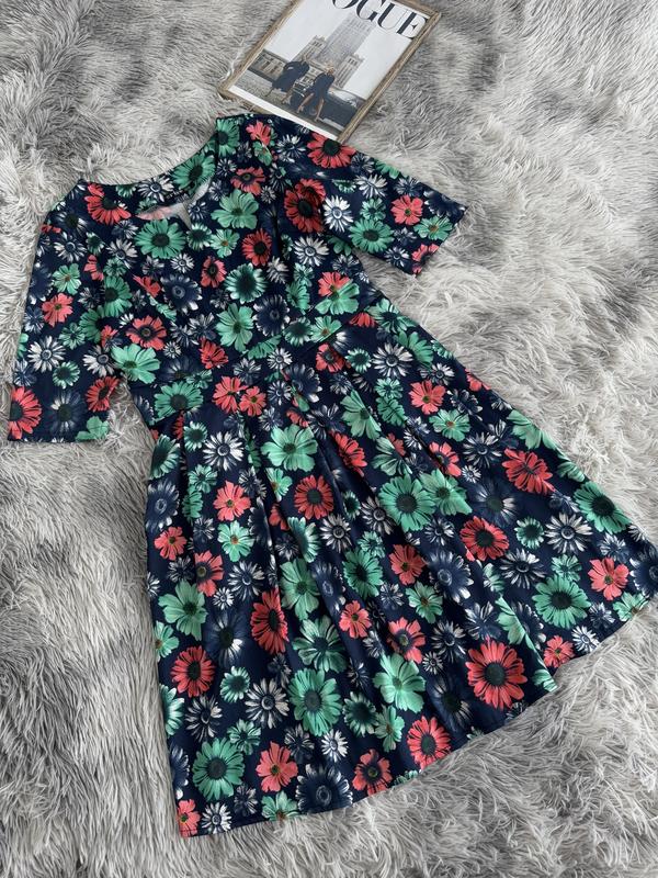 Гарна жіноча сукня , розмір L Стан ідеальний Довжина 94 см Пог 49 см Пот 40 см Рукав 3/4