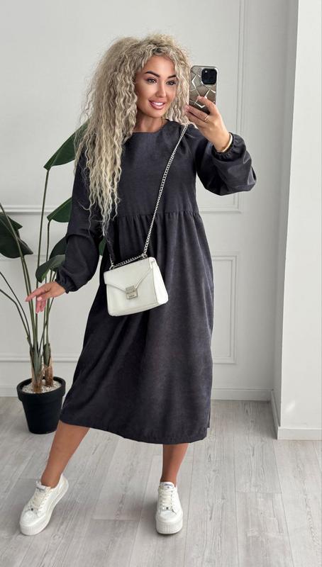 Идеальное, комфортное, женское платье миди с длинным рукавом