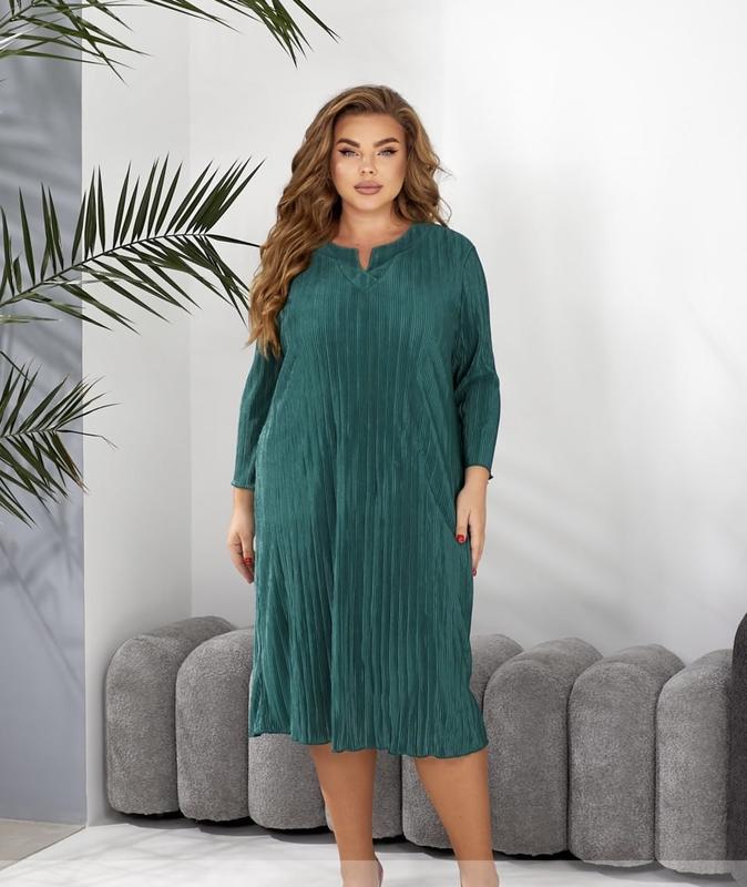 Сукня №24-30 Цiна: 1 350 грн. Розмір: 52, 54, 56, 58 Склад: поліестер 100% Матеріал: Трикотаж плиссе Розтяжність: Середня розтяжність (2-4см) Орієнтовні заміри готового виробу: 52 р-р: довжина сукні 110см, довжина рукава від плечового шва 48см, обхват рукава 36см, ОГ - 104см, ОТ -100см, OC -110см. 54 р-р: довжина сукні 110см, довжина рукава від плечового шва 48см, обхват рукава 38см, ОГ - 108см, ОТ -104см, OC -114см. 56 р-р: довжина сукні 110см, довжина рукава від плечового шва 50см, обхват рукава 40см, ОГ - 112см, ОТ -108см, OC -118см. 58 р-р: довжина сукні 110см, довжина рукава від плечового шва 50см, обхват рукава 42см, ОГ - 116см, ОТ -112см, OC -122см.