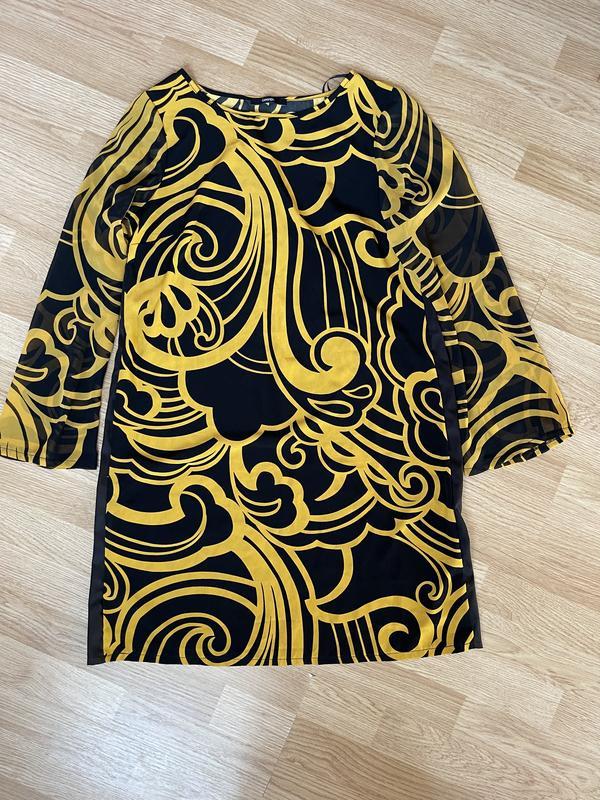 Плаття як новеньке..Не вдягалось.Шовк плотний спадаючий не мнеться.Не грубе.Рукав шифоновий.Гано сідає.Легка трапеція.Довж93см.ПОгр50см.ПОталія51см.ПОбед58см.Рукав62см.Біцепс19см