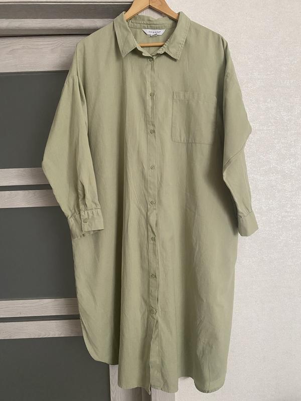 Сукня - сорочка з суміші бавовни та льону PRIMARK, розмір XL. В ідеальному у. Довжина 110 см, плечі 67 см, рукав 47 см, нпог- 72 см, талія 1/2-.74 см, стегна 1/2-80 см. По боках розрізи . 88%-бавовна, 12%- льон.
