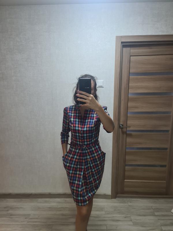 Сукня в клітинку з кишенями. Сзади молния. С поясом. Рекомендую до придбання. Мои параметры рост 168, вес 52.