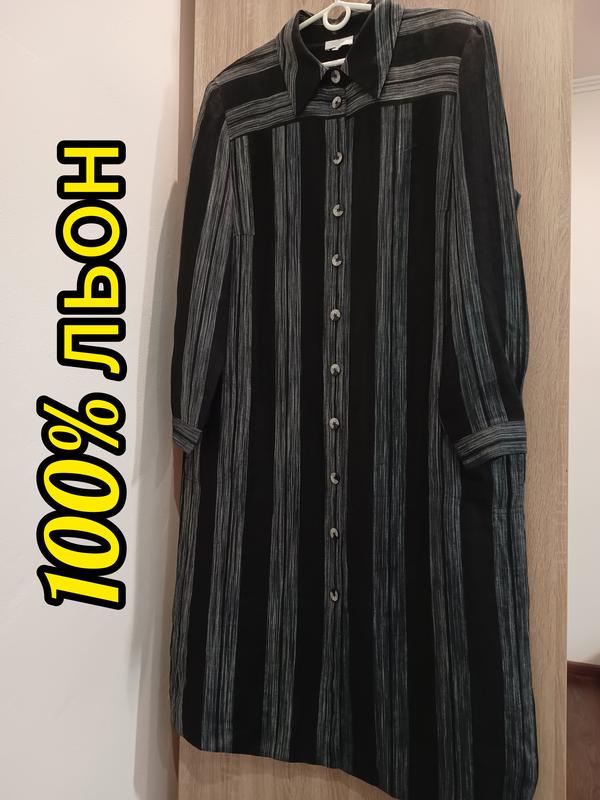 Бренд Elegance Paris, это бренд класса люкс. Бренд поднимается на модный Олимп как производитель высококачественных тканей для одежды. Имеет филиалы по всему миру, поставляя дизайнерские ткани для многих домов высокой моды, включая Dior, Valentino, французского модельера Андре Курреж, итальянского модельера Джафранко Ферре и др. Первая коллекция собственной дизайнерской одежды была выпущена в 1970 году, которая мгновенно завоевала потребителей безупречным качеством. Сегодня это мощный концерн, который интенсивно развивается во многих направлениях индустрии моды. Невероятно качественная! 100% льон Платье с карманами Внизу по бокам небольшие разрезы Длина по спине 115 см Полу окружность груди 59 не тянется Пол окружности талии 57 Пол окружности бедер 61 Рукав от плеча 60 Плечи 43/44, есть подплечники Платье свободного кроя, прямого пошива