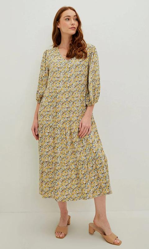 Хорошее, качественное, платье, крой свободный, ярусами, рукав три -четвертые свободный под резинку, V подобный вырез, окраска в мелкие полевые цветы, ткань качественная вискоза, состояние идеальный, пог-50, пот-51, по бедрам свободное, длина -115, длина рукава -40.