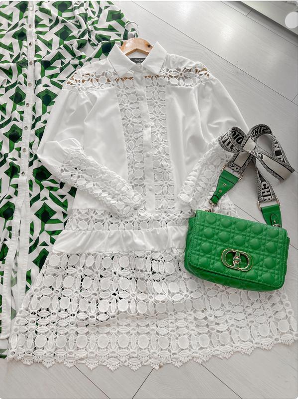 В біла сукня з мереживом Без підкладу!! розмір М поліестр напівобхват: груди-50см талія-вільно стегна-51см рукав-60см довжина сукні-95см