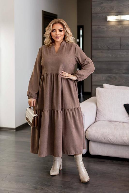 Платье женское вельветовое миди свободное а-силуэта батал для беременных повседневное стил...