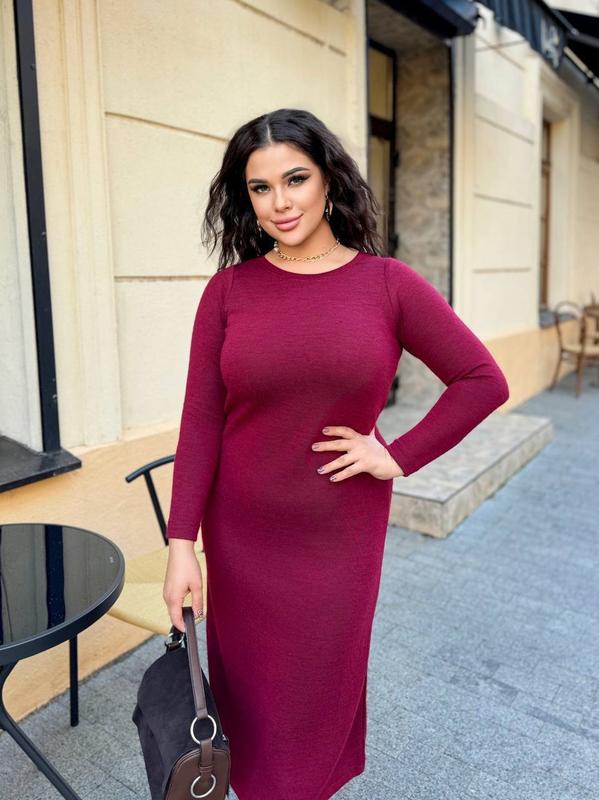 Модель 1120 Силуетна сукня, довжина міді Розміри: 48-50 и 52-54 Тканина : ангора Виміри: 48-50 ОГ 108-110см, ОС 112-114см. 52-54 ОГ 114-116см, ОС 116-118см. Довжина 125см. Довжина рукава 65см