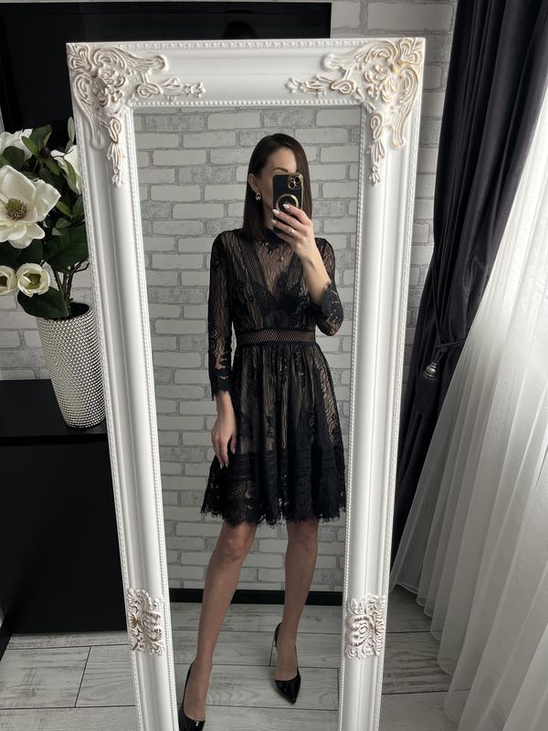 Продам вишукану сукню фірми In Vogue, розмір вказан L но краще на М, стан відмінний як нова Заміри: Довжина 91см Плечі 34см Підпахвами 41см У талії 34,5см Рукав 51см
