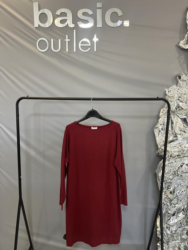 Сукня від s.Oliver — бордова класика для осінньо-зимового гардеробу. Трикотажна сукня вільного, прямого крою до колін з довгим рукавом і горловиною човником. Особливості: вертикальний шов спереду і ззаду, що візуально витягує фігуру, мінімалістичний дизайн. Ідеальна для офісу або повсякденного образу.