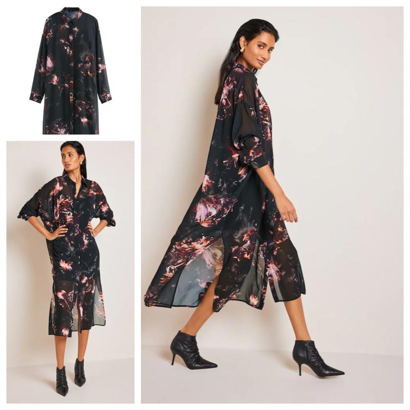 Напівпрозора сукня сорочка з шифону з абстрактним принтом Довжина міді Застібка ґудзики Нова з бірками Розмір ХЛ