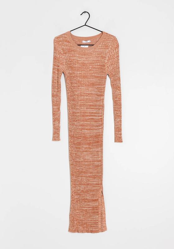 Жіноча довга сукня міді mango з віскози в рубчик помаранчевого кольору