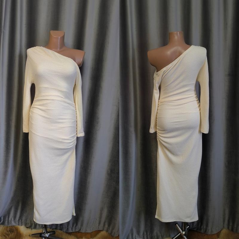Стильное и привлекательное платье, в идеальном состоянии, ( боковый разрез, зашитый вручную, длину можно корректировать-стягивать), подойдет на размер xs,s и небольшую m, цвет -молочный
