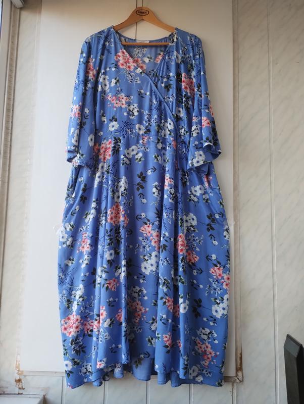Яркое платье василькового цвета Талия завышена, глухой "запАх", молния в боковом шве, рукава - колокольчики Размер заявлен EUR 54/56, на наш 62/64 ПОГ 74 ПОТ 68 ПОБ 96 Плечи 48 Бицепс 27 Длина рукава 40 Длина изделия 117