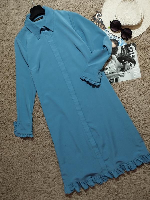 Красивое платье-рубашка миди с рюшами/платье