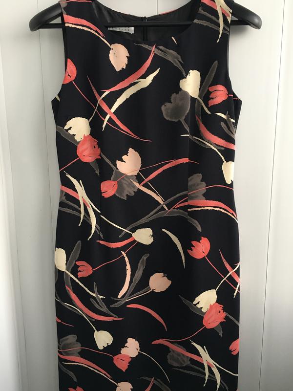Гарна сукня міді у квітковий принт Сукня на підкладці,не просвічує Позаду розріз П/о груді 45 см П/о талії 39 см П/о бедер 48 см Довжина 111 см