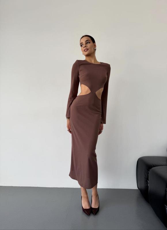 Жіноча облягаюча сукня міді з довгими рукавами і вирізами на талії