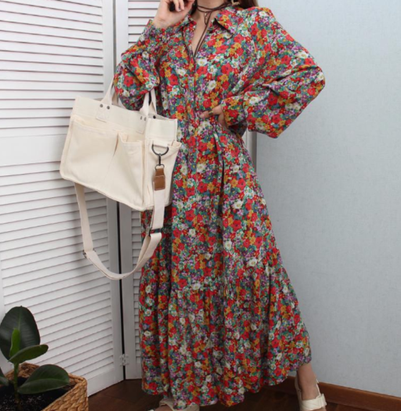Вискозное миди макси платье в цветочный принт H&M. Длинный объемный рукав на манжете. Отложной ворот. До талии идет на пуговках. Размер М Длина 118 пог 55 пот 60 поб 60