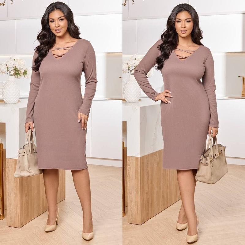 Сукня арт. dvd. 7841-1 Размер: 46-48; 50-52; 54-56; 58-60 Тканина рубчик (гарно тягнеться) Длина платья: 106 см. Длина рукава: 64 см. Яркое платье приталенного покроя, с V-образным вырезом и завязкой