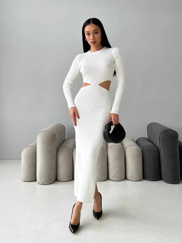 5 цветов! женское трикотажное платье-миди с вырезом на талии, базовое платье в рубчик, хло...