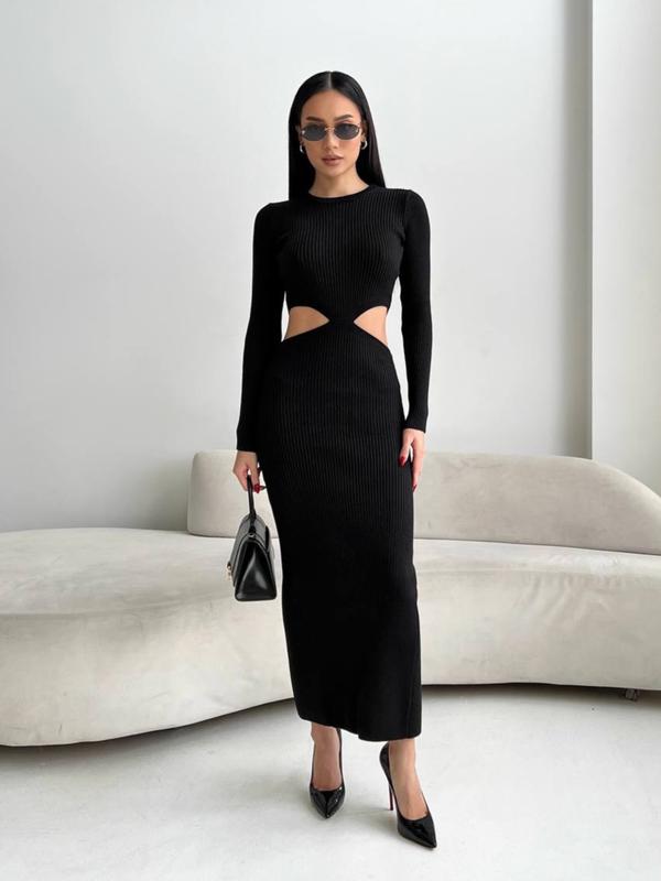 5 цветов! женское трикотажное платье-миди с вырезом на талии, базовое платье в рубчик, хло...