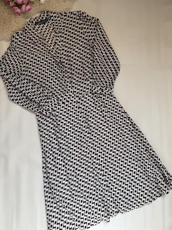 Стан відмінний Розмір 12 Плечі 40 см Рукав вкорочений-51 см Ширина під пахвами 50-51 см Ширина в талії 40 см не розтягуючи, добре тягнеться за рахунок резинки ззаду в поясі Спідниця вільна Довжина по спинці 103 см Спідниця на підкладці, не буде просвічувати Верх - віскоза, підкладка -поліестр На талії має петельки для поясу або ремінця( в комплекті немає)