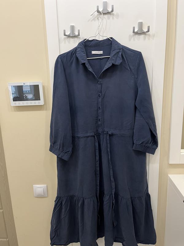 Сукня бренду Reserved, гарного темного синього кольору, довжина 115 см, під пояс. Груди - 112 см, талія по поясу 102 см, по стегнам вільна, максимальна ширина - 120 см, розмір XL