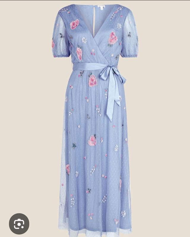 Платье из фатина расшито бисером и пайеткой, на подкладке. По бирке размер 12 но оринтуйтесь по замерам. Ткань не тянется, замеры выполнены в свободном состоянии. Замеры : об/грудь 100, об/талии 90, об/бедра 118, длина 126 плечи 42 Ткань полиэстер.