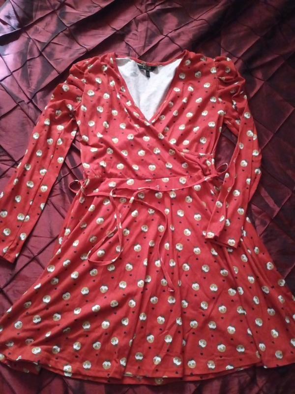 женское платье, без дефектов, с имитацией на запах, с поясом. ПОГ50 см, ПОТ 40 см, рукав от плечевого шва 60 см, длина 85 см