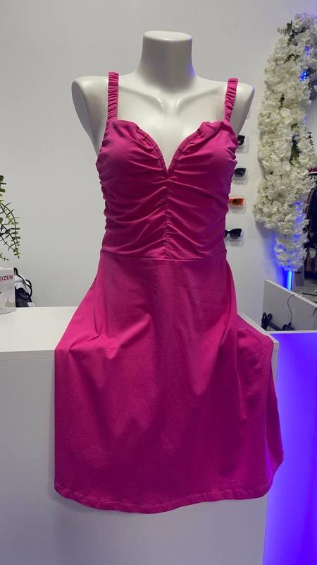 Сукня від бренду Teranova Стильна літня сукня на бретелях із жіночним акцентом — драпіруванням на ліфі, що красиво підкреслює лінію декольте. Легка та приємна до тіла тканина створює комфорт у носінні, а насичений колір додає настрою. 🔹 В наявності кольори: • Малиновий — розміри S, M • Електрик — розмір XL • Чорний — розмір M