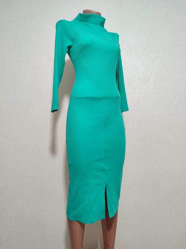 Секонд высокого класса, стильные и качественные вещи известных брендов. Стильное платье с разрезом спереди, стильный дизайн, оубчик, стрейч. Заміри на фото.