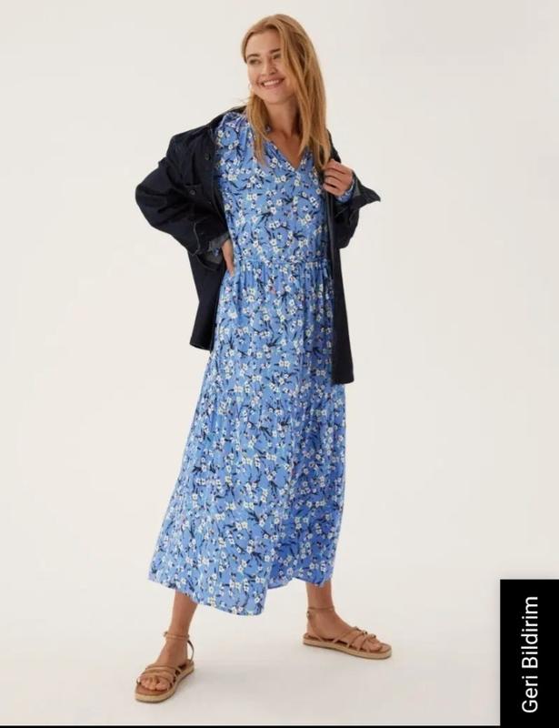 Классический крой, V-образный вырез и длинные рукава. Платье украшено цветочным узором по всей поверхности. Регулируемый пояс обеспечивает комфортную посадку. Сборки в дизайне придают ему стильный вид. Размер 12/ L Замеры Длина 122 см Полуобхват груди 52 см Талия 49 см . Рукав длина от ворота 68 см