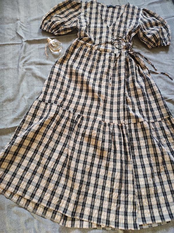 Платье на запах на завязках. Ткань жата, на талии завязки извне и внутри. Платье очень комфортно в носке 👌 Указан размер 14 Пл 36-37 Ног 48+, регулируется запахом Нот 42,+, регулируется запахом, завязками Нос свободно Рукав 32 от плеча, на резинках Длж 124 Состав на фото 🌸