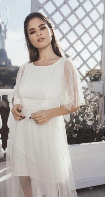 Ніжна сукня в кольорі шампань розмір xs ПОГ-41 см, ПОТ-35см, довжина без фатіна-83, з фатіном 117см