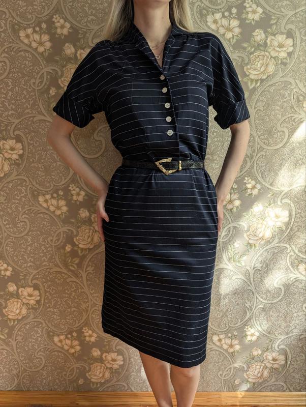Элегантное платье премиального бренда Akris ✨ Винтаж 🤌 Производство: Швейцария. Материал: 100% хлопок. Цвет: темно-синий и белая полоска 💙🤍 Замеры: рукав реглан от ворота 40, ПОГ 50,5, ПОТ 48, ПОС 50, длина 113. Качество пошива отлично, как и должно быть у Akris. Пояс в комплекте не идет. Есть пара минимальных зашитий именно там, где резинка на поясе. Выглядит очень красиво 😍
