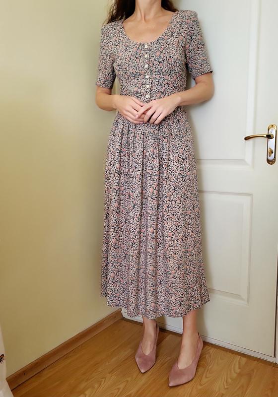 Прекрасное винтажное платье от бренда Dorothy Perkins. Стан идеален, без каких-либо нюансов. Отличное качество. Есть подплечники. Состав: 100% вискоза. Размер S/М Одето на рост 168 см Длина - 125 см ПОГ - 43-44 см ПОТ - 38 см (затягивается поясом сзади до меньшего объема) ПОБ - свободно (74 см)