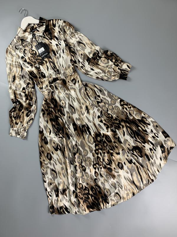 Леопардовва сукня міді від дорого бренду Espiga. Збоку потайна блискавка. На спинці або спереду завязується на бант. Тканина плотна та важка. Виглядає стильно та вишукано. Якість відмінна. Ціна сайту та бірки 4000грн ▪️Склад: 100% віскоза ▪️Розмір: L ✍️Заміри: Плечі-41см ПОГ-55см ПОТ-39см ПОБ-вільно Довжина рукава-62см Довжина виробу-125см