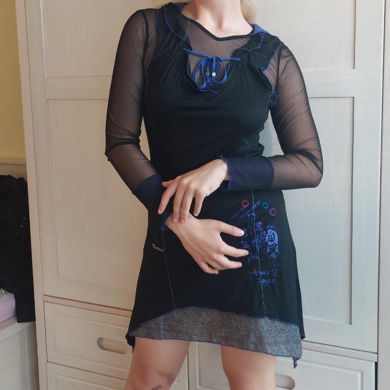 ~Двох шарова сукня "Funky fresh"~ Стан 10/10 Размер М Замеры: Платье без рукавов Длина изделия 81-101 асимметричный низ Объем в груди полуобхват 41-54 Платье сетка Длина изделия 107-91 Ширина плеч 34 тянется Объем в груди полуобхват 39-54 По дополнительной информации обратитесь в сообщение