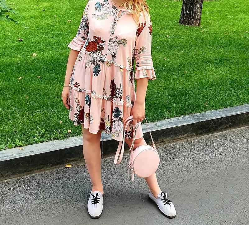 Сукня Cropp рожева з квітами у розмірі M. Охоплення грудей 46 см, загальна довжина 83 см. Тягнеться. В ідеальному стані, без дефектів.