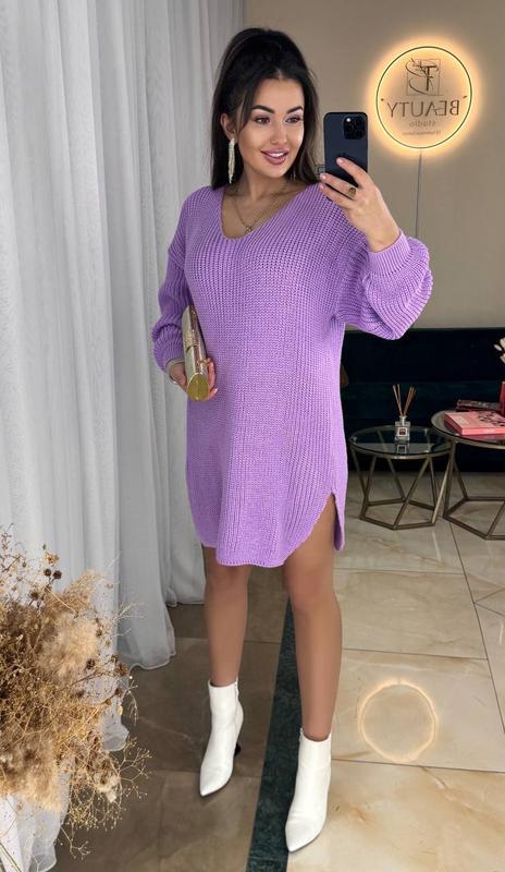 УТЕПЛЮЄМОСЬ ЧУДОВИЙ ВАРІАНТ ДЛЯ ПРОХОЛОДНОЇ ПОГОДИ Сукня - туніка оверсайз Модель 5004 Розмір 42-48 В'язка 30% акрил, 70% .вовна Ціна 810 грн Кольори: молоко, пудра, пляшка, джинс, лаванда