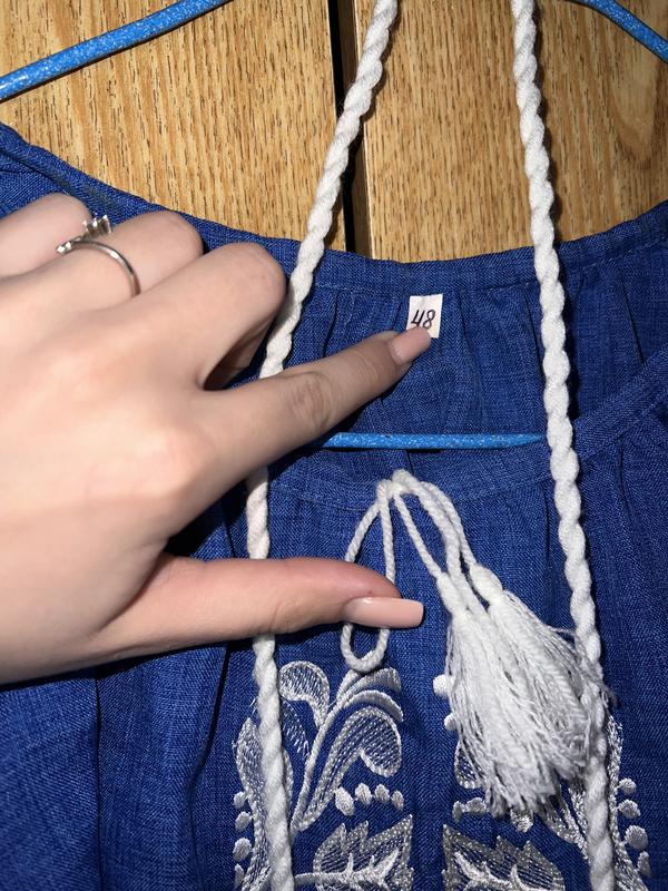 ✨ Сукня з натуральної тканини насиченого синього кольору. ✨ Прикрашена білою вишивкою з квітковим орнаментом на рукавах і по центру. ✨ Має пояс-шнурівку з китицями, що підкреслює талію. ✨ Рукави – 3/4 із вишивкою та зав’язками. ✨ Зручний вільний крій, який пасує до будь-якої фігури. 🔹 Розмір: 48 🔹 Матеріал: льон 🔹 Ідеально підходить як для повсякденного носіння, так і для святкових подій. 💙 Гармонія традиційного стилю та сучасної зручності!